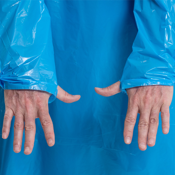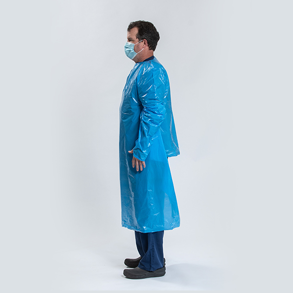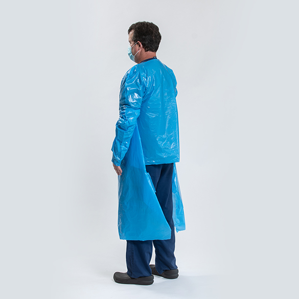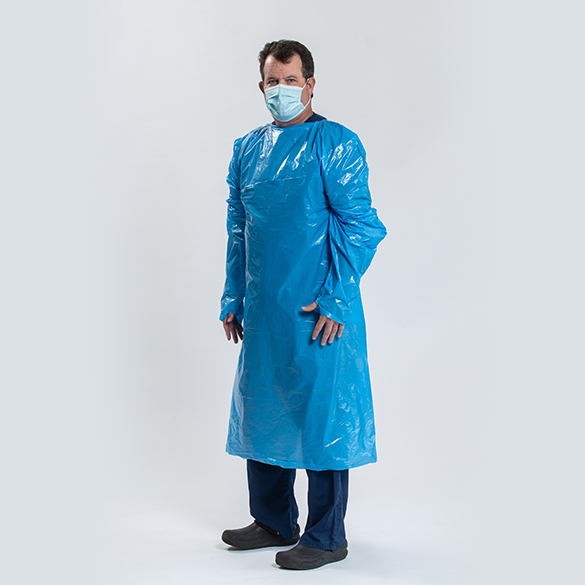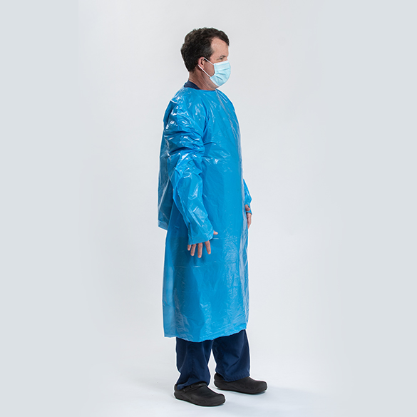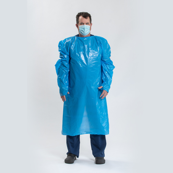 The PCD100 Disposable Isolation Gown is an over-the-head protective, non-surgical gown that is universal in size, features long sleeves with thumb loops and back protection. Manufactured in the United States, the PCD100 Disposable Isolation Gown is latex free and made of tri-layered, blue polyethylene film with and includes an anti-static additive.